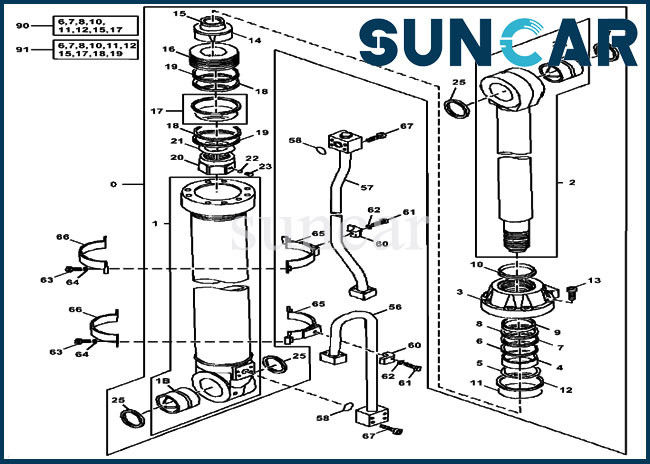 قطعات در اجزای سیلندر بازوی گروهی:
